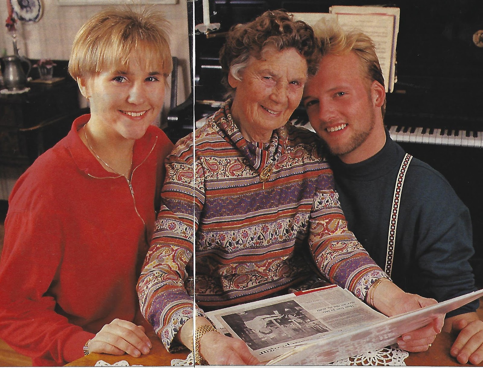 | Greta Person med sina stipendiater Elsa Mgnusson och Per Norbäck 1988 Foto: Kurt Pettersson. Året Runt. |