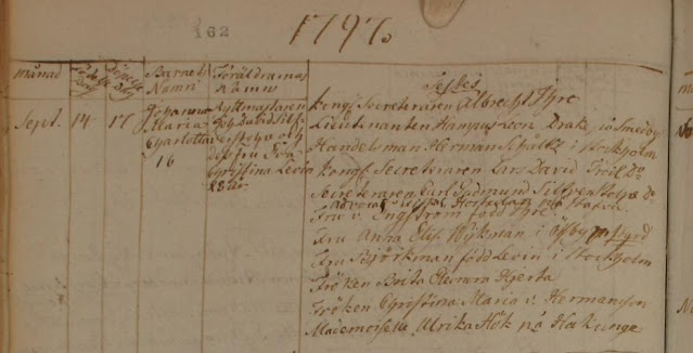 - Johanna Maria Charlotta Silfverstolpe född 10/9 1797 i Stockholm (Garn) - Död 5/9 1809